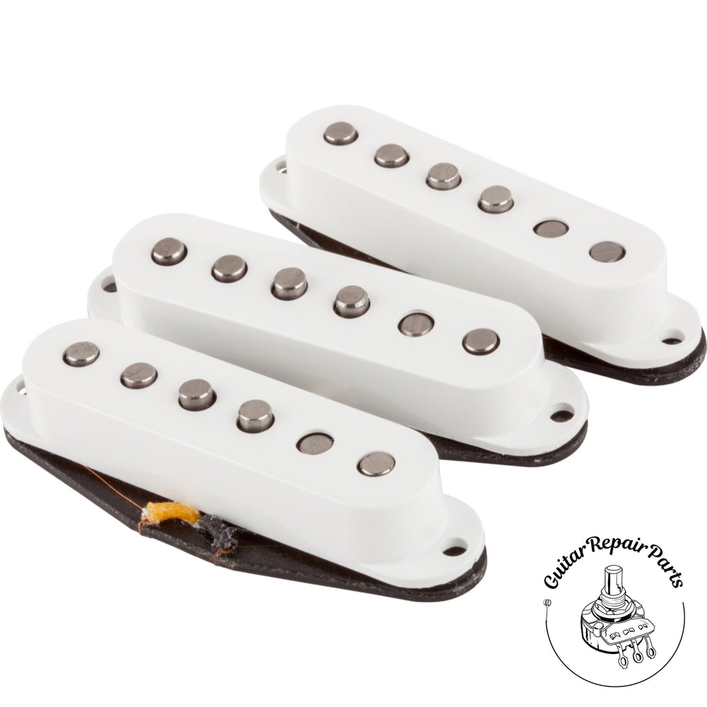 The Fender Fat '50s Strat Pickup Set gives you calibrated pickups constructed with hand-beveled, staggered Alnico V magnets and Formvar magnet wire and they deliver enhanced bass response without the harsh midrange. The middle pickup is reverse wound/reverse polarity for hum canceling in positions 2 and 4.