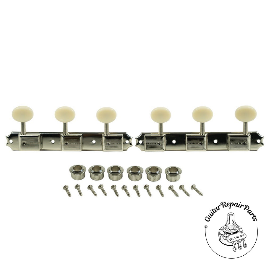Kluson KD-3P-NP Single Line Deluxe Tuning Machines, 3 On A Plate - Nickel / Butter bean
