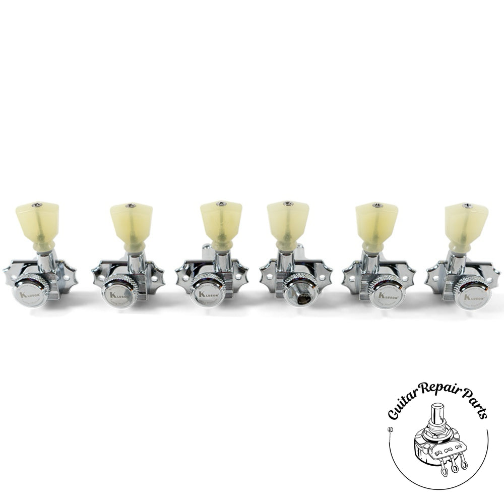 The vintage outline, metal keystone button and pin-stripes pay tribute to Kluson® heritage while the brand new housing appearance incorporates all the features the modern guitarist demands. High gear ratio guarantees silky smooth operation, fine tuning stability with no backlash, all in a sealed one-piece housing! All mounting hardware is included.