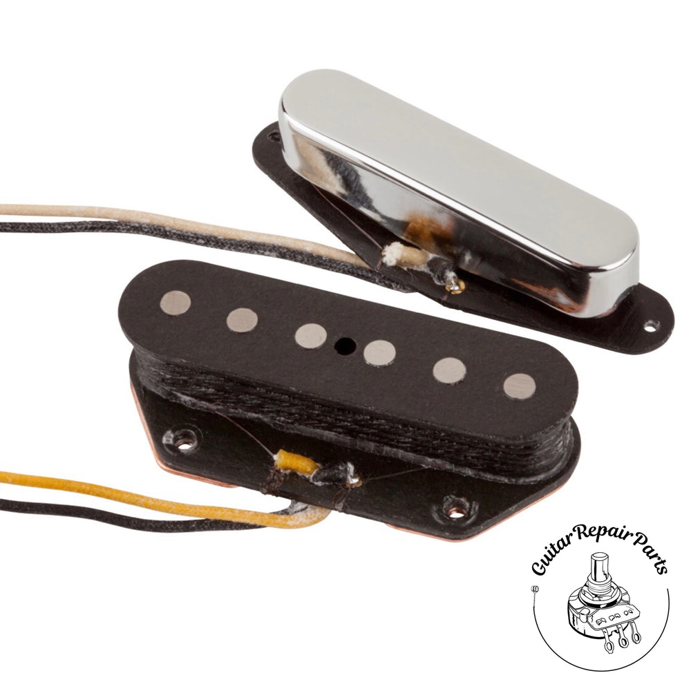 Custom Shop Texas Special Telecaster pickups are over-wound for increased output, and are made with alnico 5 magnets and enamel-coated magnet wire for outstanding presence and midrange. Nickel/silver neck pickup cover produces clear, warm Telecaster tone; bridge pickup features height-staggered polepieces and copper-plated steel bottom plate.