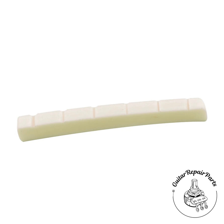 The Earvana compensated shelf nut helps minimize common intonation issues that may be experienced by players when fingering notes in the first 3-5 frets and open position chords. By selectively extending the string's break-off point at the nut, players are better able achieve a total balance throughout the entire fretboard.