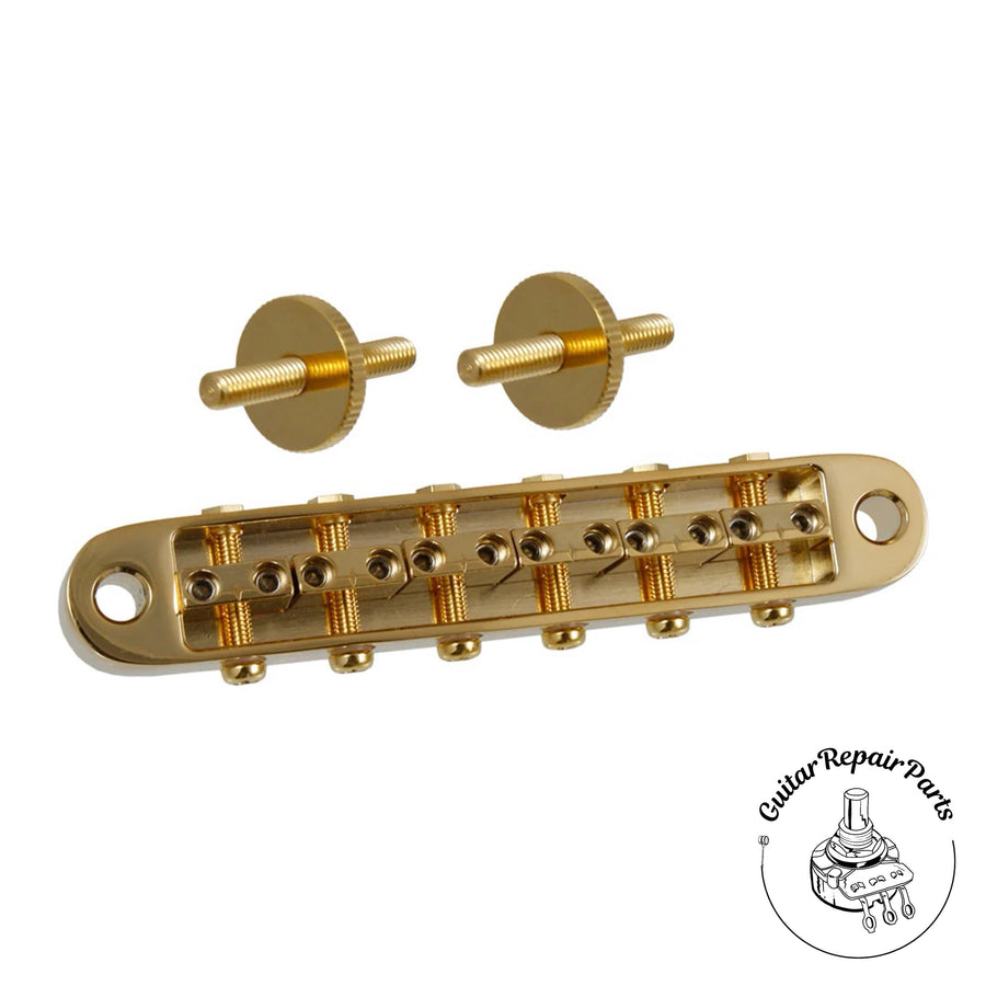 Gotoh 510BN Tune-o-matic bridge with height adjustable saddles. Most Tuneomatic style bridges are designed to accommodate a 12" fingerboard radius, offering little by way of string-to-string height adjustment. The Gotoh height adjustable Tuneomatic can readily be matched to a wide range of common fingerboard radius' and dial it in to a perfect match! No longer do you have to decide between high action on the outer strings or buzzing inner strings!