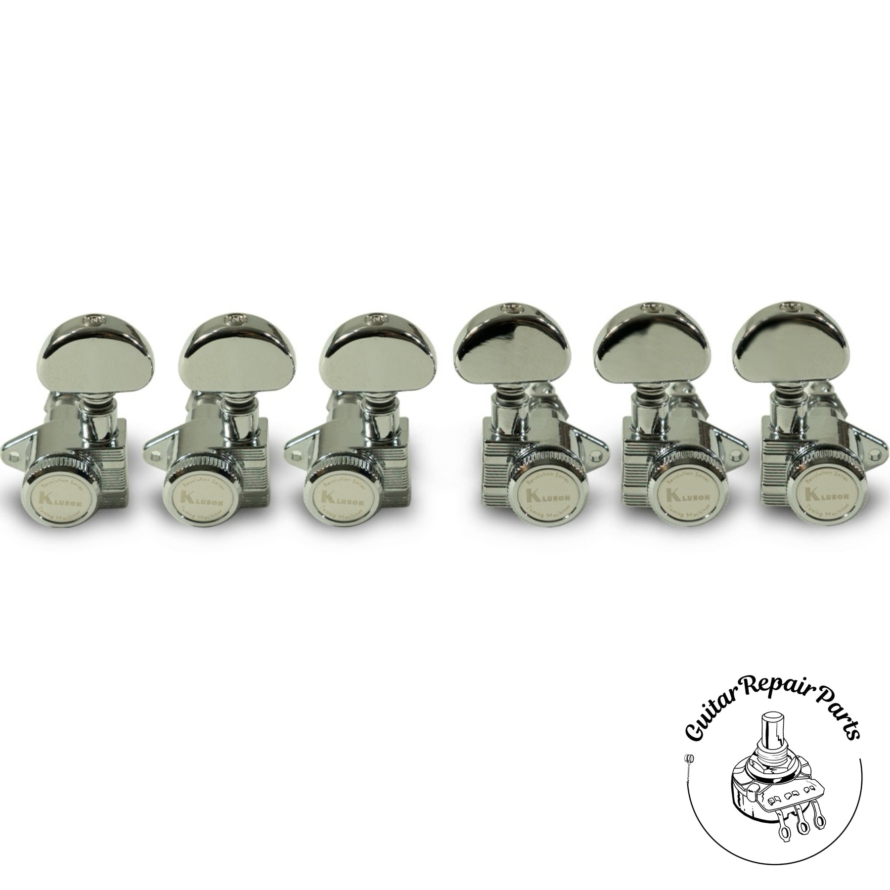 Kluson's Revolution E-mount locking tuning machines are designed to fit many electric and acoustic instruments manufactured post 1970, giving you the option, in many cases, for a non-modification required upgrade in both performance and appearance. We like them as an upgrade for instruments that were previously equipped with Grover Rotomatic type tuners.