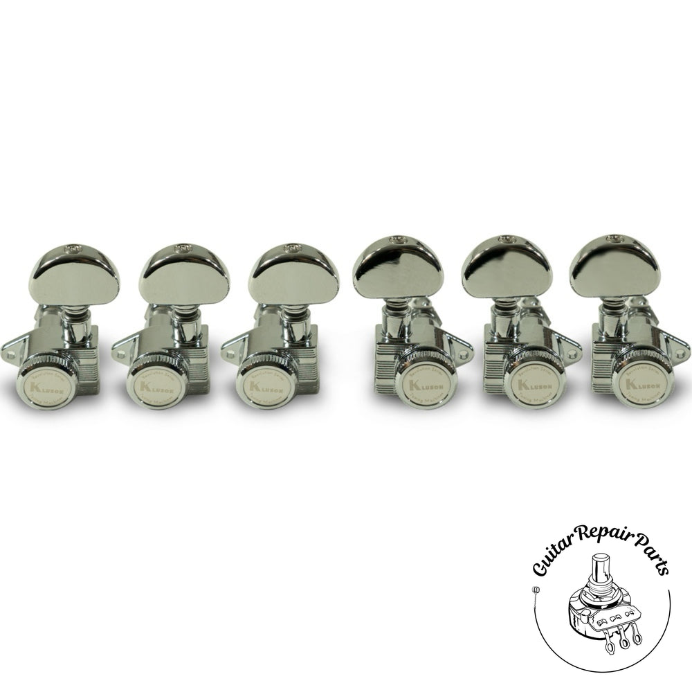 Kluson KVD-3-CPDR Vintage Diecast Tuning Machines, 3x3 Screw-in Bushing - Chrome / Plastic Oval