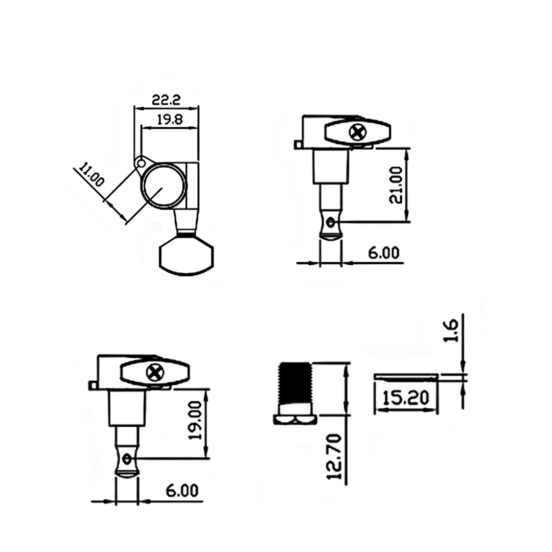 Designed to be a more compact tuning key, the True Tune Mid-Sized Tuners are a great choice for smaller headstocks and those using a 6 in-line format. The True Tune Mid-size keys feature an 18:1 ratio and staggered string posts that eliminate the need for a string guide. Tention washers installed between the base plate and string post ensure stable and accurate tuning while high quality nylon washers added to its steel button shaft give this key a high-end feel! The internal components are completely sealed in a diecast zinc housing to protect them from weather and humidity as well as the sweat and oils produced by your hands. Whether playing in your room or going out on tour, these keys are made to be long-lasting and durable to keep you in tune wherever you play!